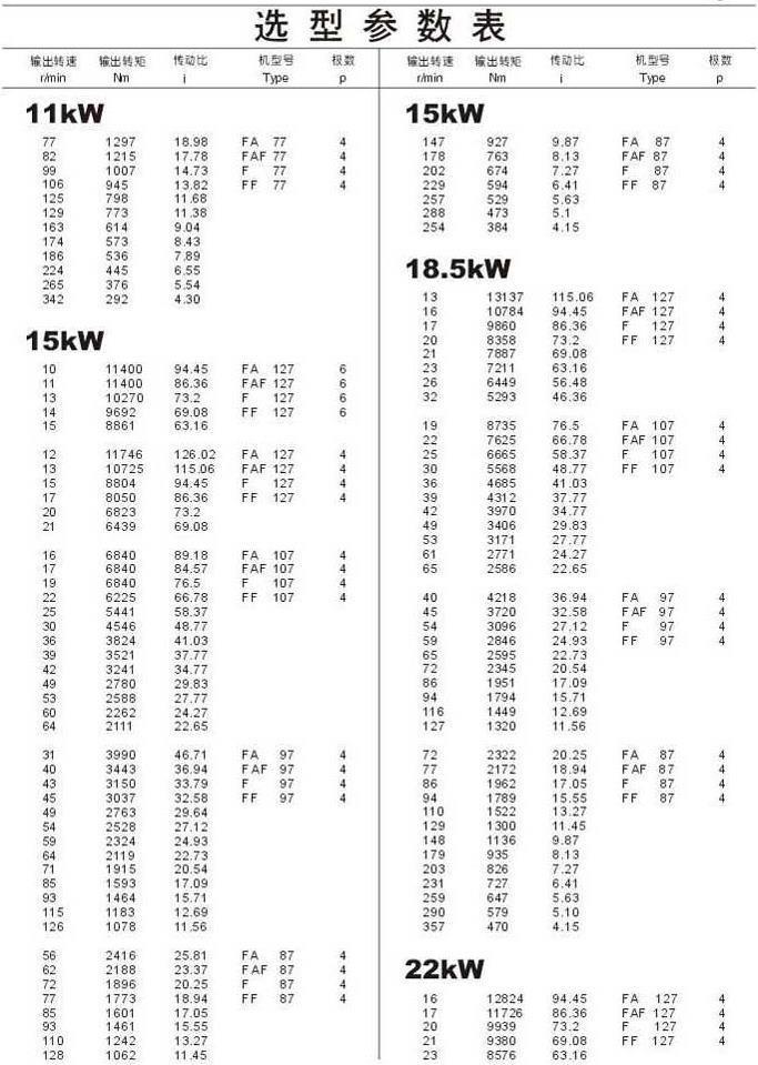 选型参数表11kW(续),15kW,18.5kW,22kW