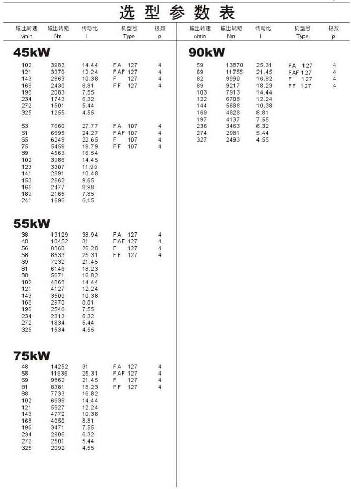 选型参数表45kW (续),55kW ,75kW ,90kW 142