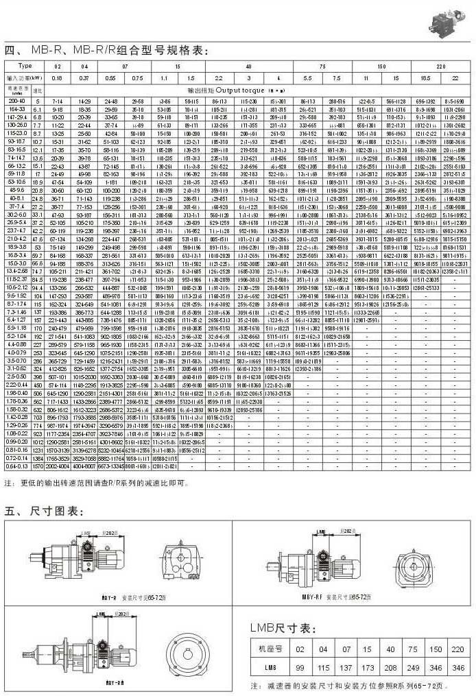 MB-R,MB-R/R则和型号规格表尺寸图表