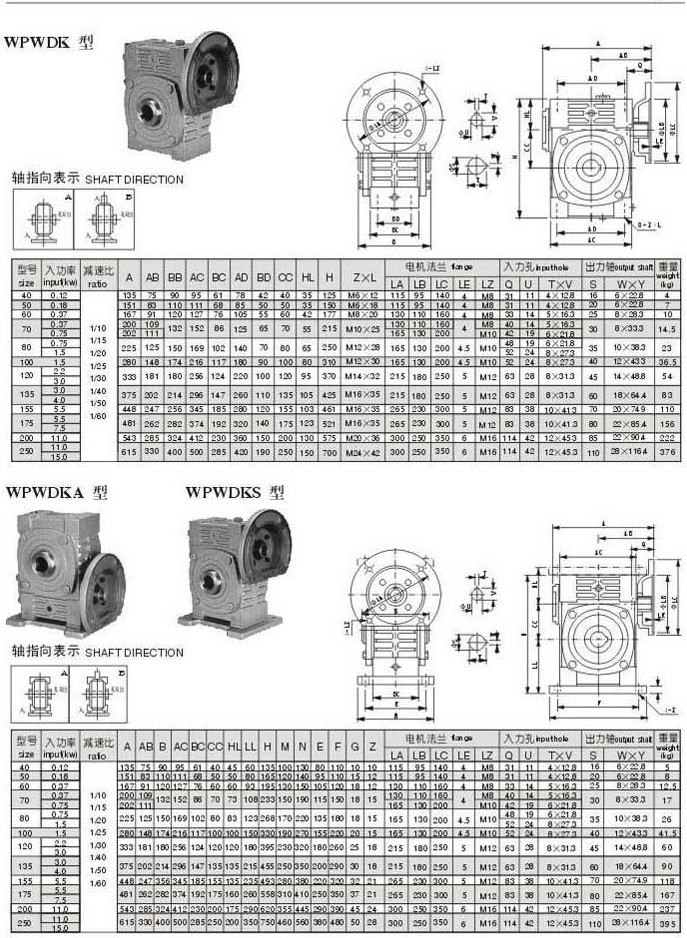 WPWDK,WPWDKA,WPWDKS型型号参数图表