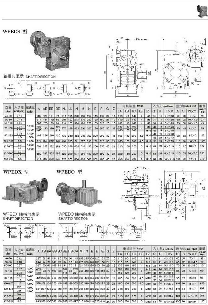 WPEDS,WPEDX,WPEDO型型号参数图表