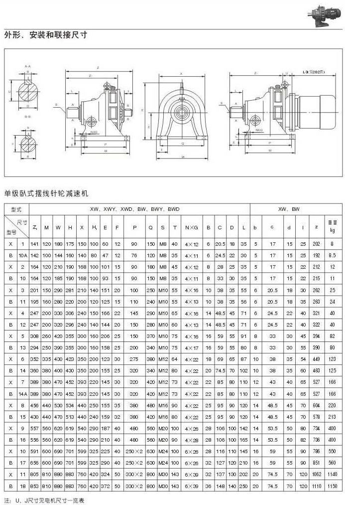 X . B摆线针轮减速机外型图,安装和联结尺寸X . B摆线单级卧式针轮减速机外型图,安装和联结尺寸 27