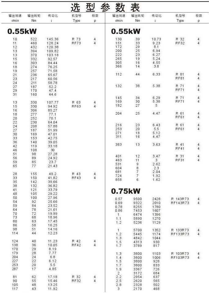 选型参数表0.55kW(续),0.75kW