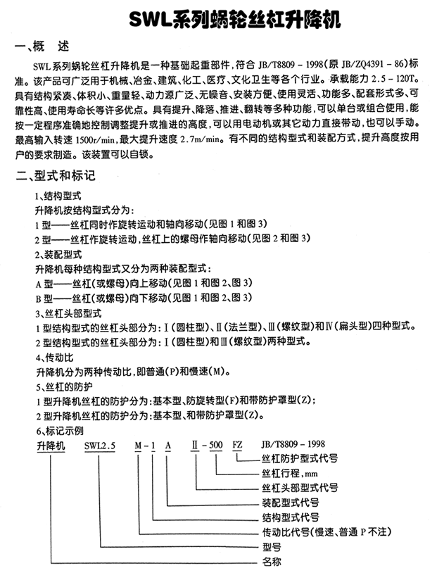 SWL、JWM丝杆升降机 提升重量0.5-120吨
