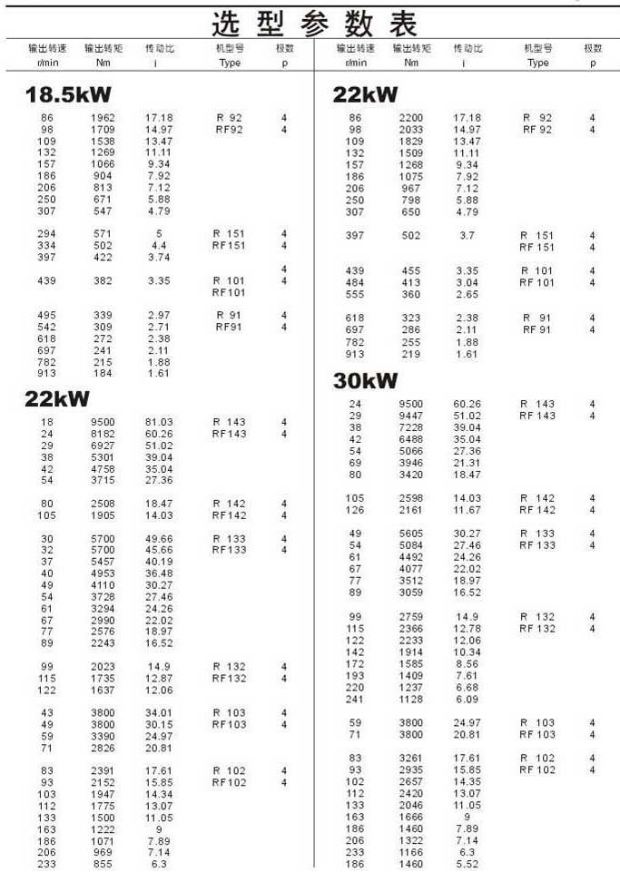 选型参数表18.5kW(续),22kW,30kW